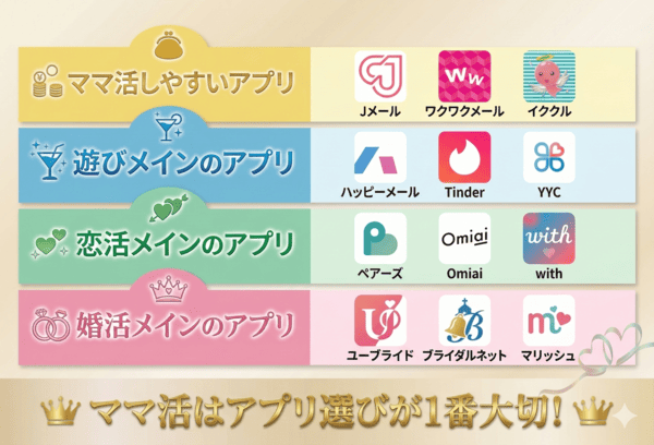 また、間違ったアプリを使ってしまうと一生ママ活できないです。